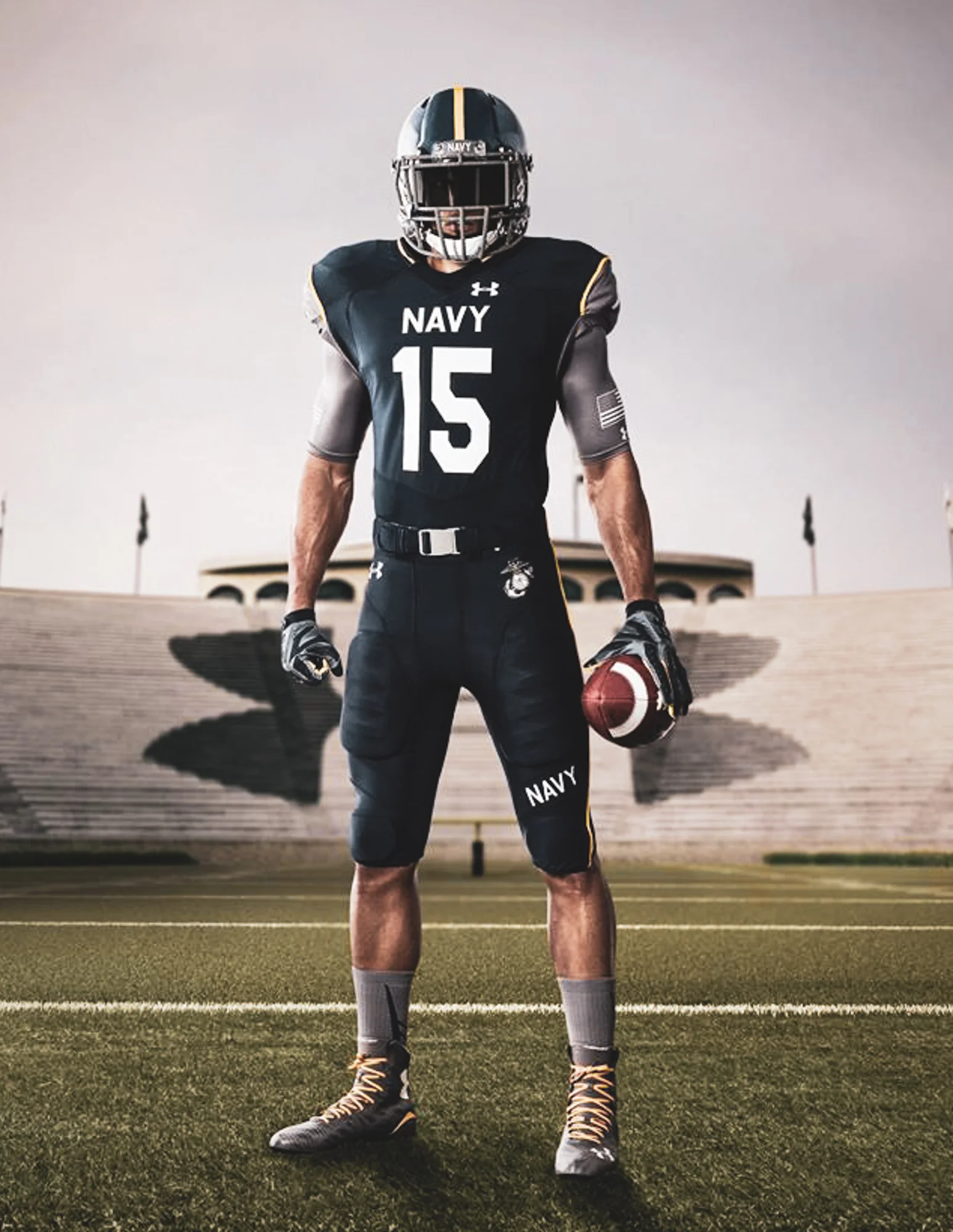 NAVY: The gold numbers on midnight navy uniforms is beautiful, and the Navy helmets look good.